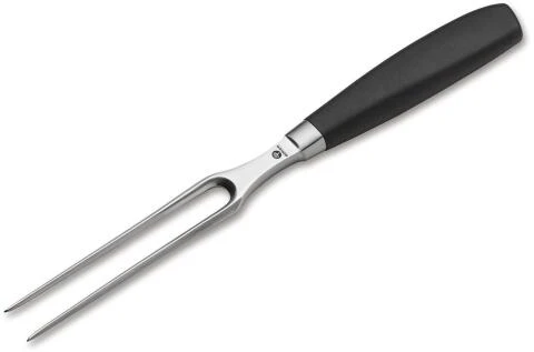 Die Fleischgabel hat gegenüber der Besteckgabel den Vorteil, dass sie mit ihren beiden sehr spitzen, langen Zinken leicht tief ins Fleisch eindringen kann. Damit ist sie prädestiniert zum Tranchieren und Vorlegen großer Bratenstücke. Durch die langen Zinken und den langen Griff ist sie auch zum Auflegen und Wenden am Grill hervorragend geeignet.