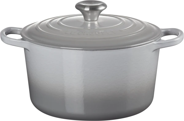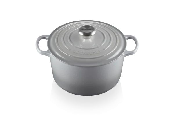 Le Creuset hoher Bräter Signature rund, 24 cm in perlgrau. Ideal zum Braten, Schmoren und Backen.