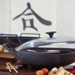 Le Creuset in marseille bleu. Die Sautépfanne von Le Creuset ist unentbehrlich für das Rösten (Garschwenken) von fein geschnittenen Fleischstücken in der Pfanne. Dazu hat sie höhere, leicht schräge Seitenwände, die den Herd vor Spritzern schützt. Ein praktischer Gegengriff verbessert den Tragekomfort, durch den Holzgriff bleibt die Pfanne auch im heißen Zustand problemlos anfassbar.