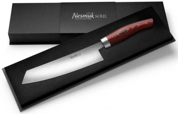 Nesmuk verbindet traditionsreiche Handwerkkunst mit modernster Technologie. Das Unternehmen aus Solingen entwickelt und fertigt Messer in höchstmöglicher Schärfe und setzt dabei auf Stahlsorten, Edel-Materialien und Technologien, die in der Schneidwarenindustrie noch nie zuvor verwendet worden sind – und genau das macht den Unterschied! Alle Messer werden unter dem Anspruch gefertigt, in ihrer Schärfe nicht überboten werden zu können und in jedem Anwendungsbereich den feinstmöglichen Schnitt zu ermöglichen. Die Produkte entstehen in mühevoller, mehrjähriger Detail-Arbeit. Alle Produkte sind mit praktischen und dekorativen Alleinstellungsmerkmalen ausgestattet und genießen den Ruf, jeweils die Besten in ihrer Kategorie zu sein! Sie sind zeitlos, funktional und von höchster Qualität. Es macht keinen Unterschied, ob das Messer links- und rechtshändig geführt wird. Zusätzlich bietet Nesmuk eine Vielzahl an praktischen Zubehör zum Schärfen, Aufbewahren, Pflege sowie Arbeiten wie z.B. Streichriemen, Messerhalter und Schneidbretter an.