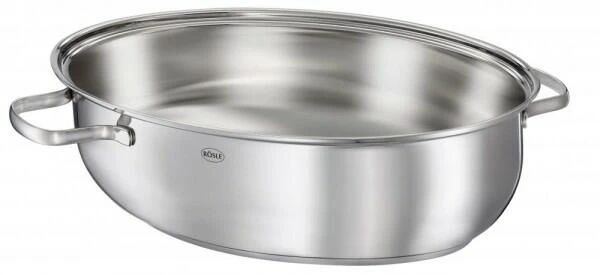 Rösle Bräter ELEGANCE mit Antihaftversiegelung. Hochwertiger Bräter, dessen Deckel ideal als Fischpfanne genutzt werden kann.